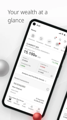 Trải nghiệm cá nhân hóa tối đa với các tùy chỉnh chế độ xem độc đáo. Kích hoạt tính năng xem trước nhanh (sneak peek) để cập nhật tức thì hiệu suất danh mục đầu tư của bạn. Tạo lối tắt riêng cho các tính năng thường dùng, tối ưu hóa trải nghiệm sử dụng. Nền tảng hỗ trợ nhiều ngôn ngữ bao gồm tiếng Anh, tiếng Trung giản thể và phồn thể, cùng với lựa chọn chế độ sáng hoặc tối để phù hợp với sở thích cá nhân. Để đủ điều kiện truy cập nền tảng đặc quyền này, quý khách cần có tài khoản Private Banking được mở tại Singapore hoặc Hồng Kông. Vui lòng liên hệ Quản lý Quan hệ Khách hàng của bạn để đăng ký. Việc đủ điều kiện sử dụng các dịch vụ và tính năng kỹ thuật số sẽ phụ thuộc vào quốc gia cư trú hoặc thành lập của quý khách. Các điều khoản và điều kiện áp dụng.